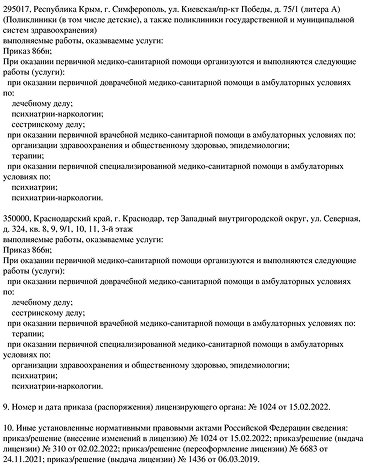 Медицинская лицензия наркологической клиники «Детокс»